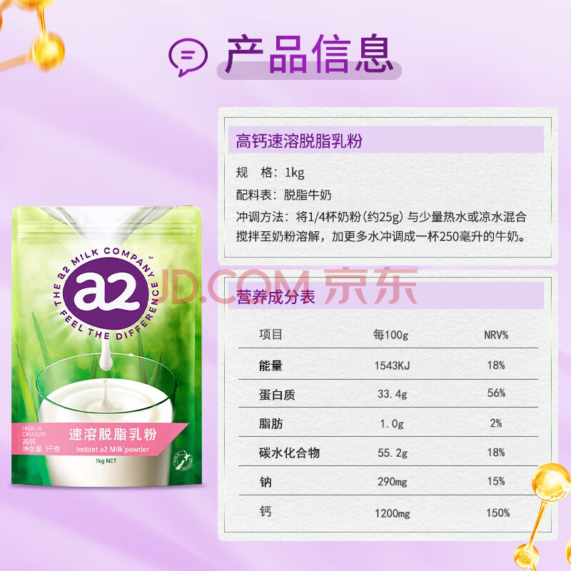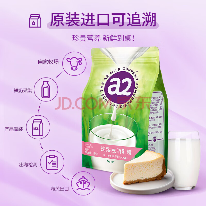 商品相册:a2脱脂奶粉1kg 进口牛奶高钙高蛋白好吸收自护力提升成人奶粉 送礼第
