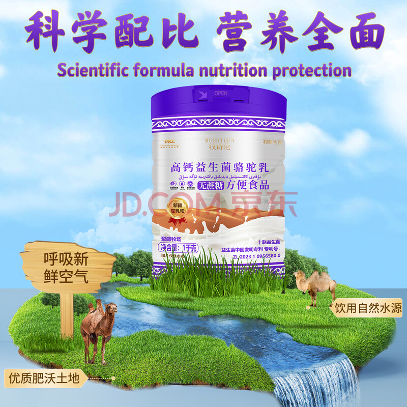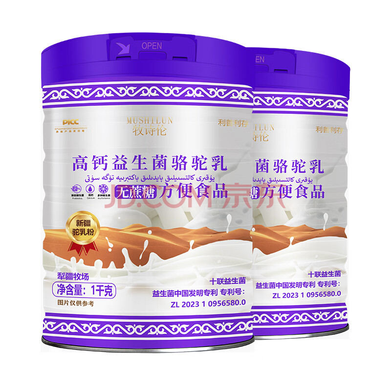 商品相册:牧诗伦【复合营养粉】无蔗糖添加骆驼奶粉新疆正宗中老年高钙1000g*2罐第