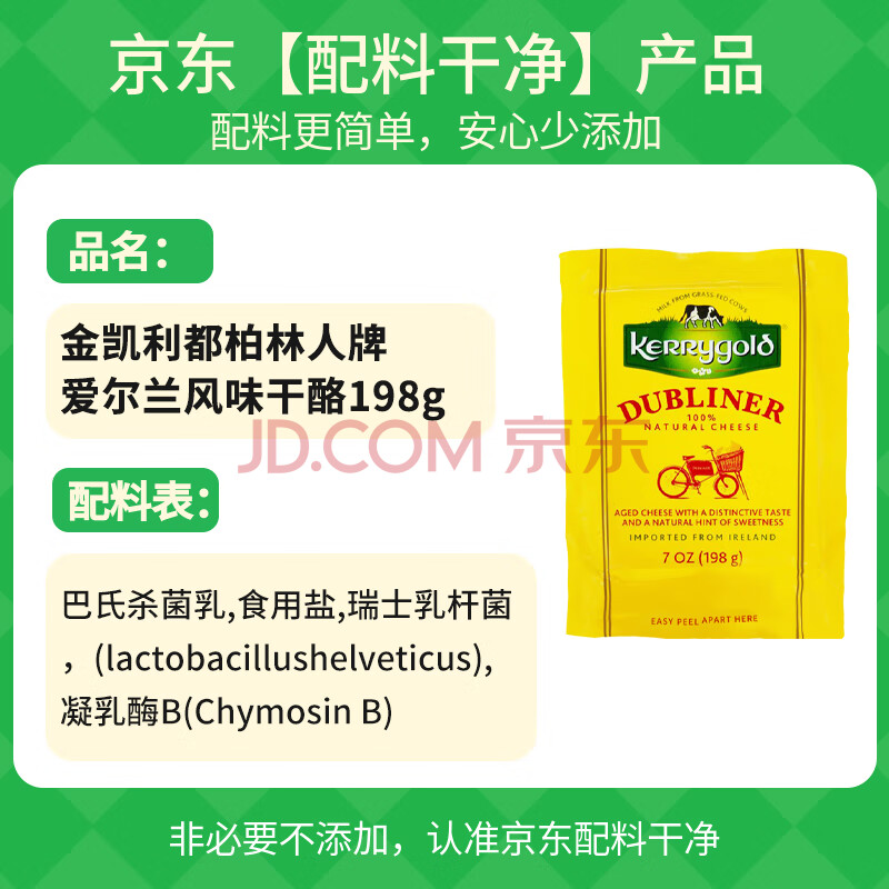 商品相册:金凯利爱尔兰进口都柏林人奶酪 198g一包(干酪) 原制天然芝士烘焙第