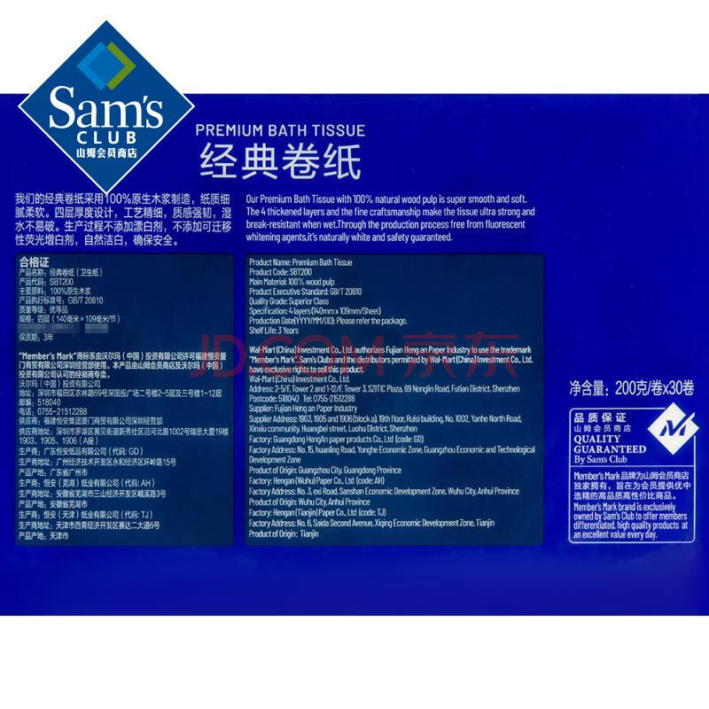 商品相册:Member's Mark 经典卷纸(卫生纸) 200g/卷*30卷 4层 200g/卷*30卷第