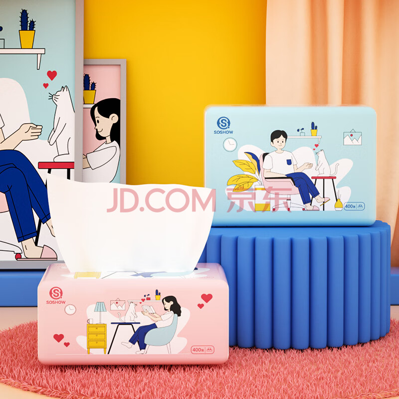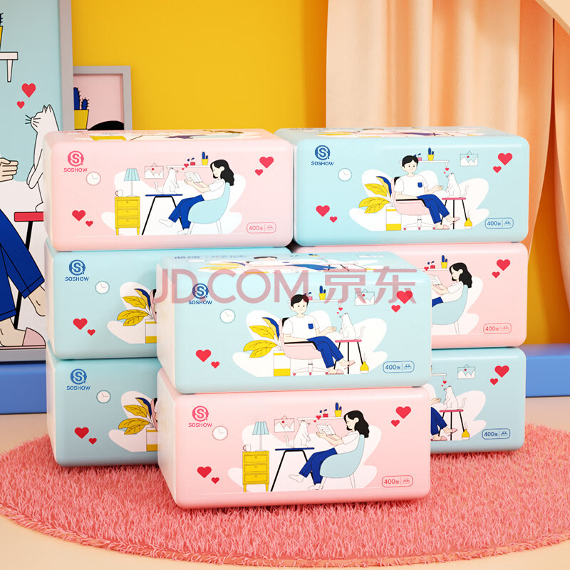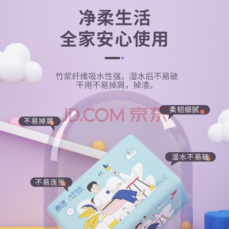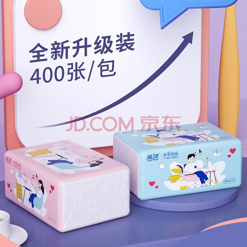 商品相册:蓝漂抽纸 我爱我家4层100抽*24包双色加厚卫生纸巾面巾纸整箱装厕纸第
