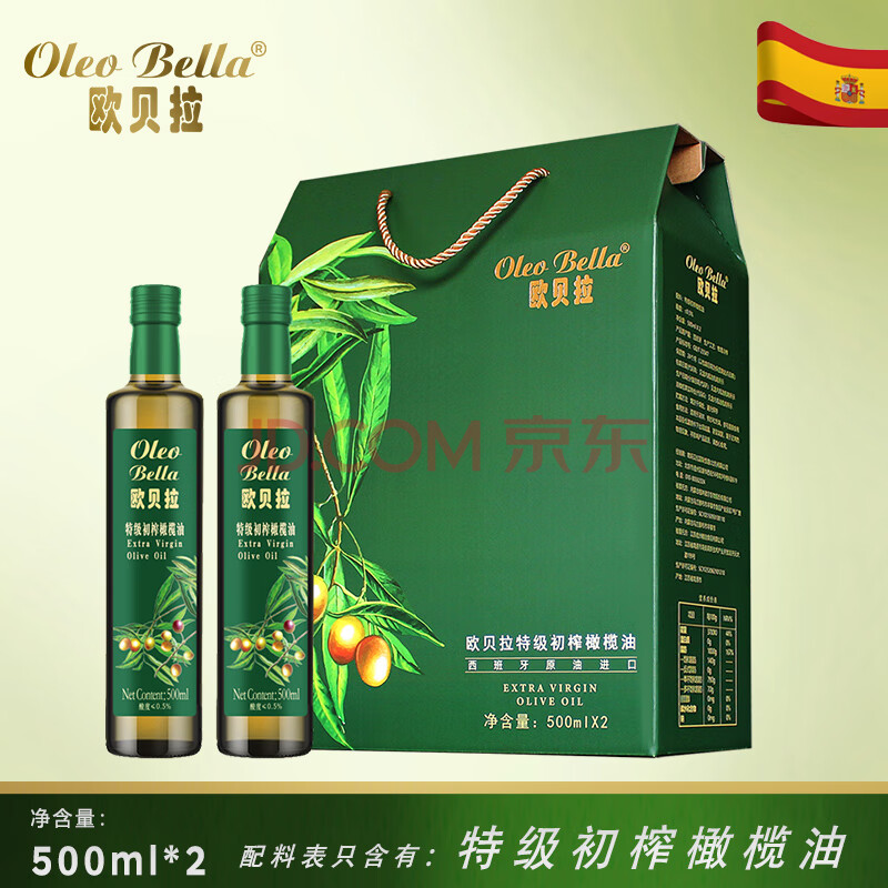 商品相册:欧贝拉(Oleo Bella)西班牙原油进口特级初榨橄榄油500mlx2礼盒 团购年货礼盒 送礼第