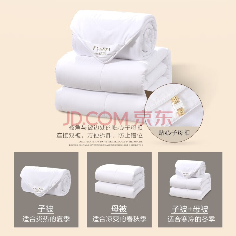 商品相册:富安娜 舒暖七孔抗菌 纤维被 二合一子母被四季被 9斤 230*229cm 白色第