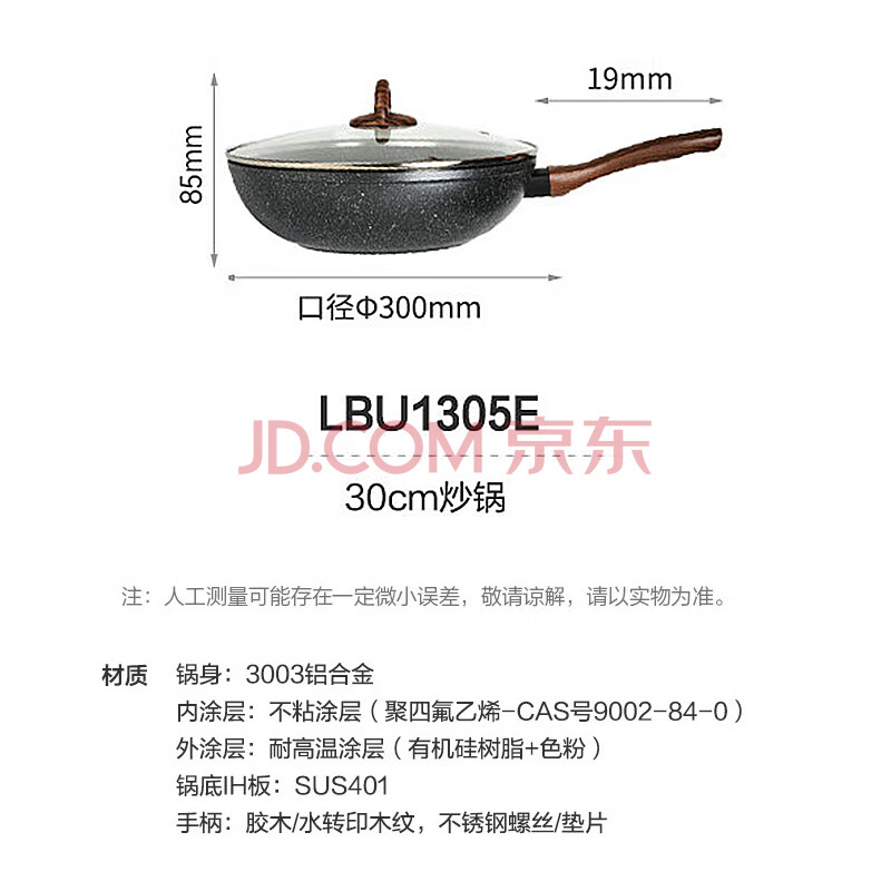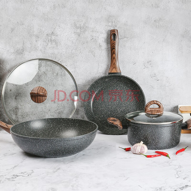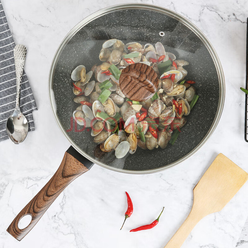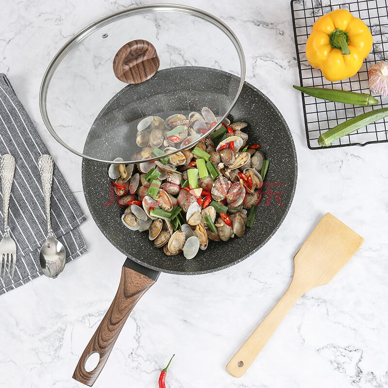 商品相册:乐扣乐扣 麦饭石色不粘锅炒锅平底炒锅煎锅炒菜电磁炉燃气锅具30cm带盖第