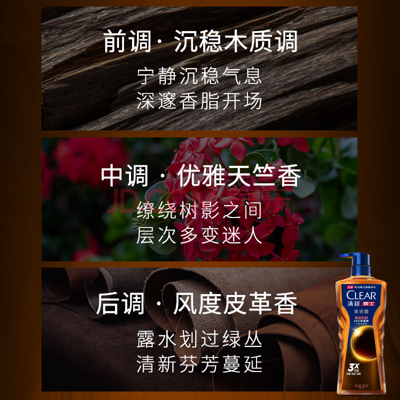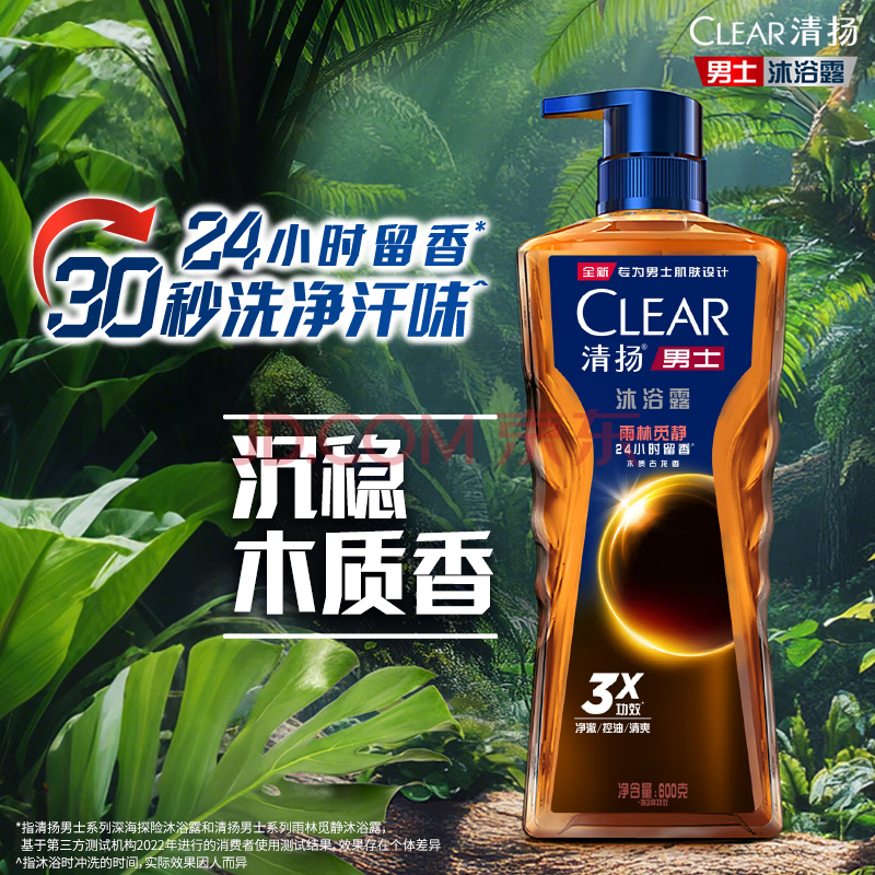 商品相册:清扬(CLEAR)男士古龙香氛沐浴露雨林秘境木质香氛600g*2新老包装交替发货第