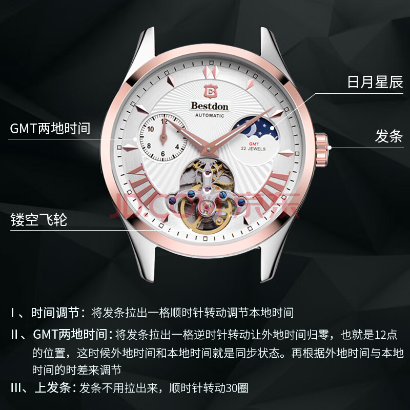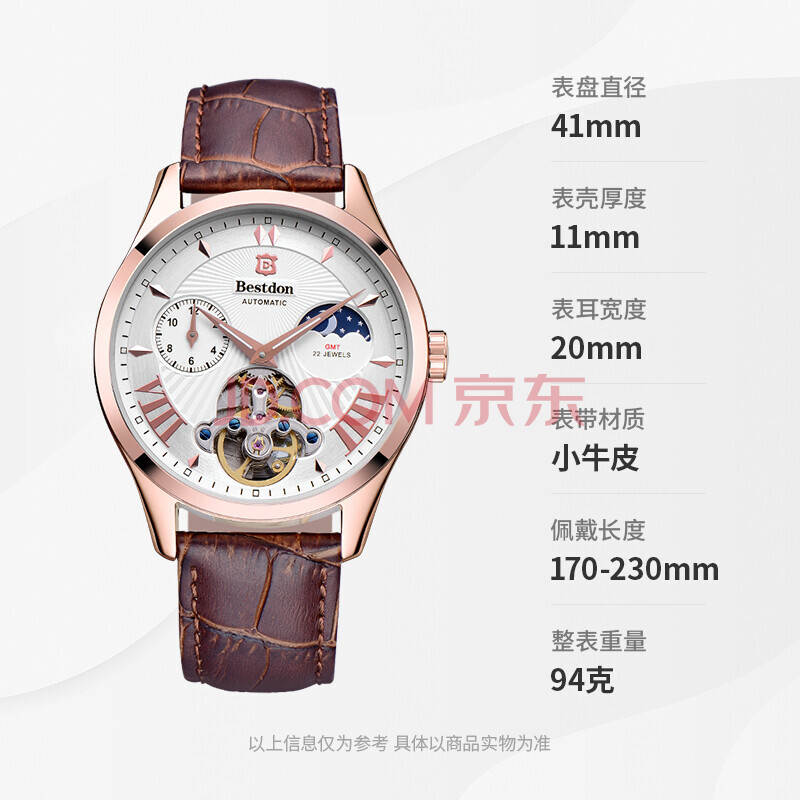 商品相册:邦顿(Bestdon)男士手表自动机械表防水夜光国腕表礼盒男款礼物送男生第