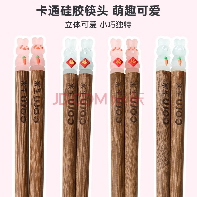 商品相册:玉米(CORN) 卡通兔子儿童筷子木质家用4岁实木6一12岁宝宝幼儿专用 抱萝卜第