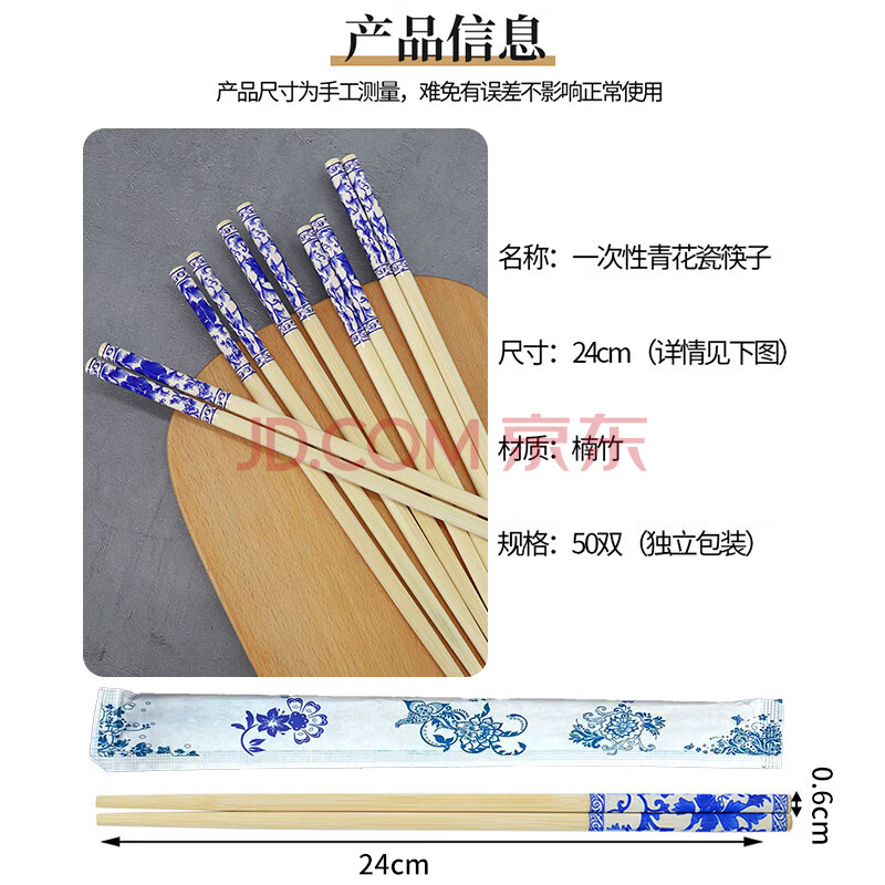 商品相册:佳茉一次性筷子青花瓷高档独立包装方便筷火锅筷野餐露营外卖碗筷餐具第