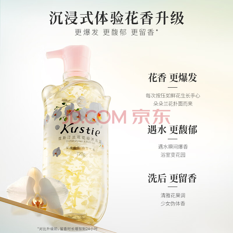 商品相册:蔻斯汀(Kustie)兰花花瓣沐浴露720g 清新淡雅香氛沐浴紧致弹滑第