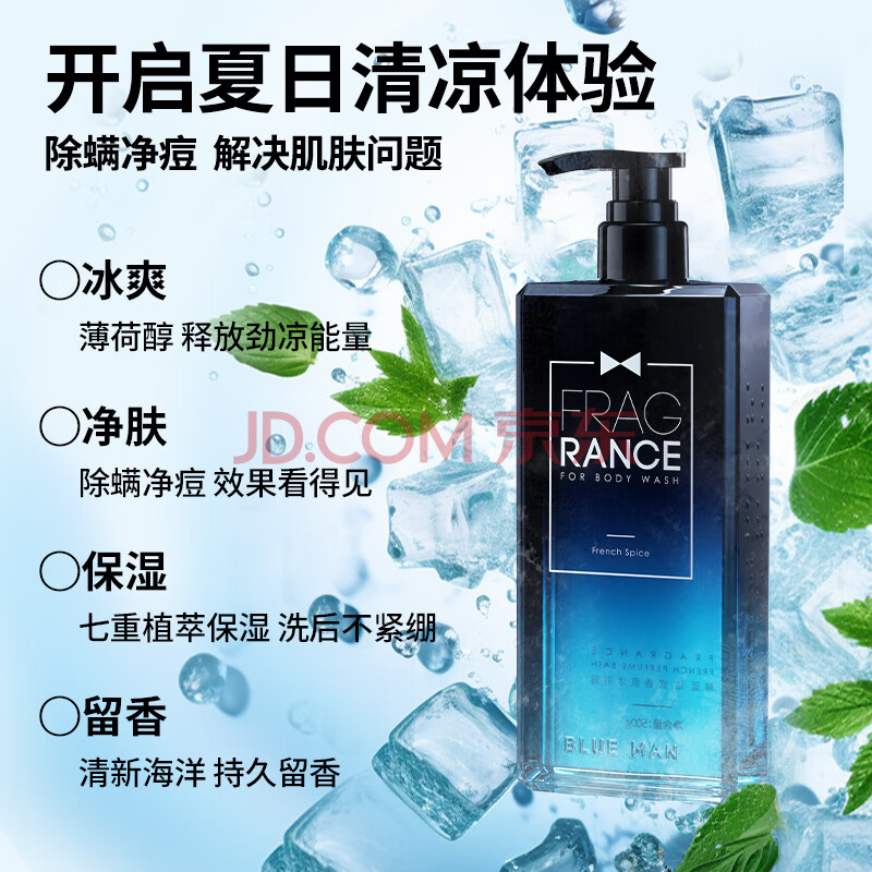 商品相册:尊蓝男士薄荷除螨运动沐浴露500g(止痒背部净痘持久留香控油沐浴液)第