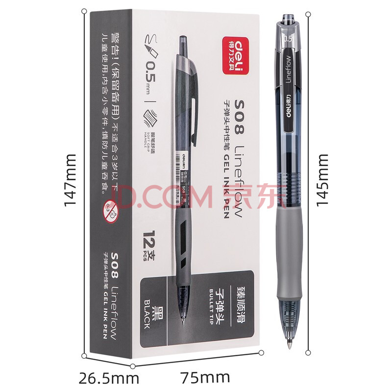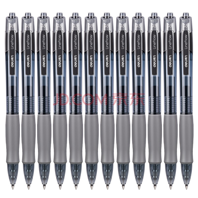 商品相册:【开学必备】得力(deli)臻顺滑中性笔签字笔 0.5mm子弹头按动笔水笔 办公用品 黑色 12支/盒 144支 S08第