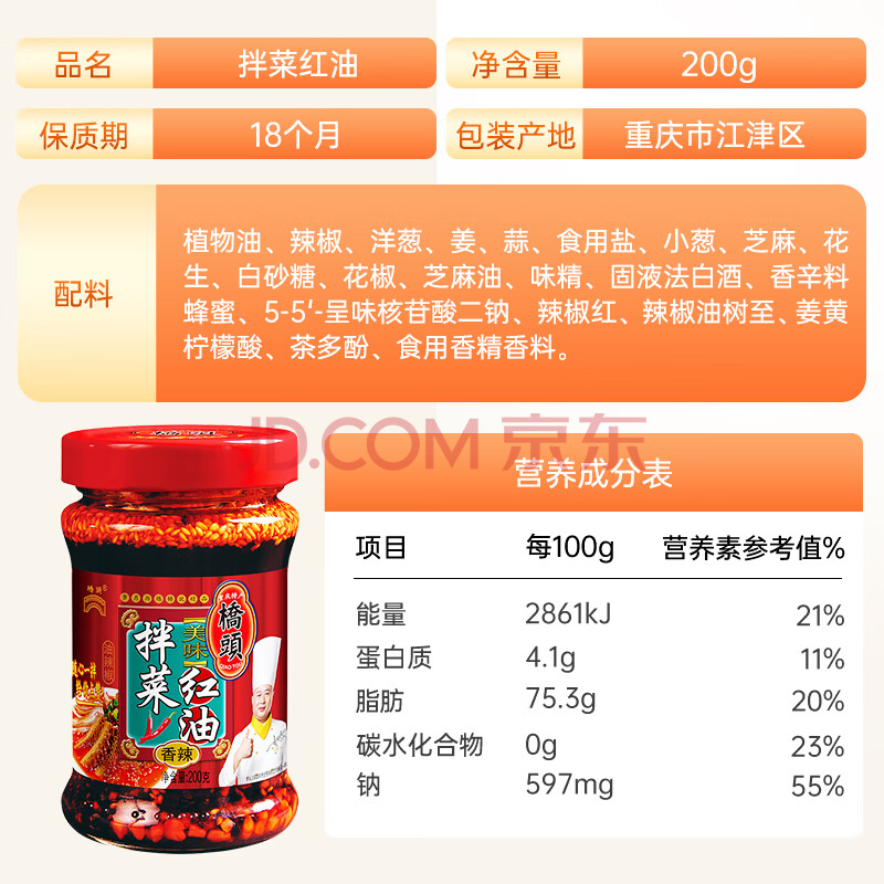 商品相册:桥头重庆特产红油油泼辣子辣椒油凉拌菜拌面调料200g家用调料第