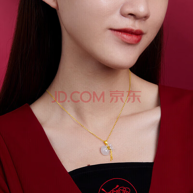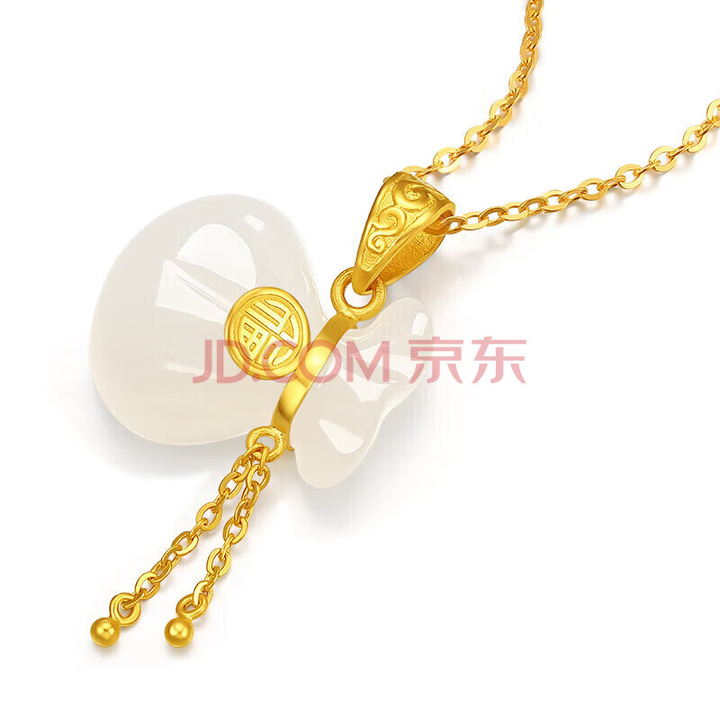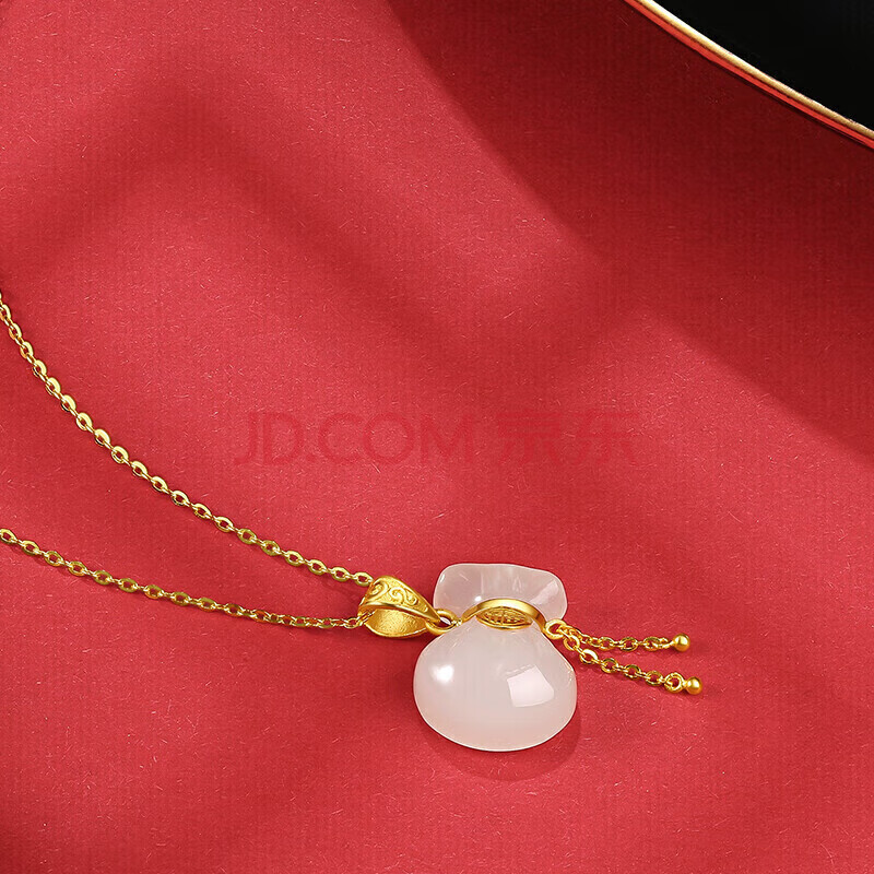 商品相册:六桂福珠宝 黄金吊坠 福袋 足金镶玉挂坠项链女 HT0600014配银链 0.77g第