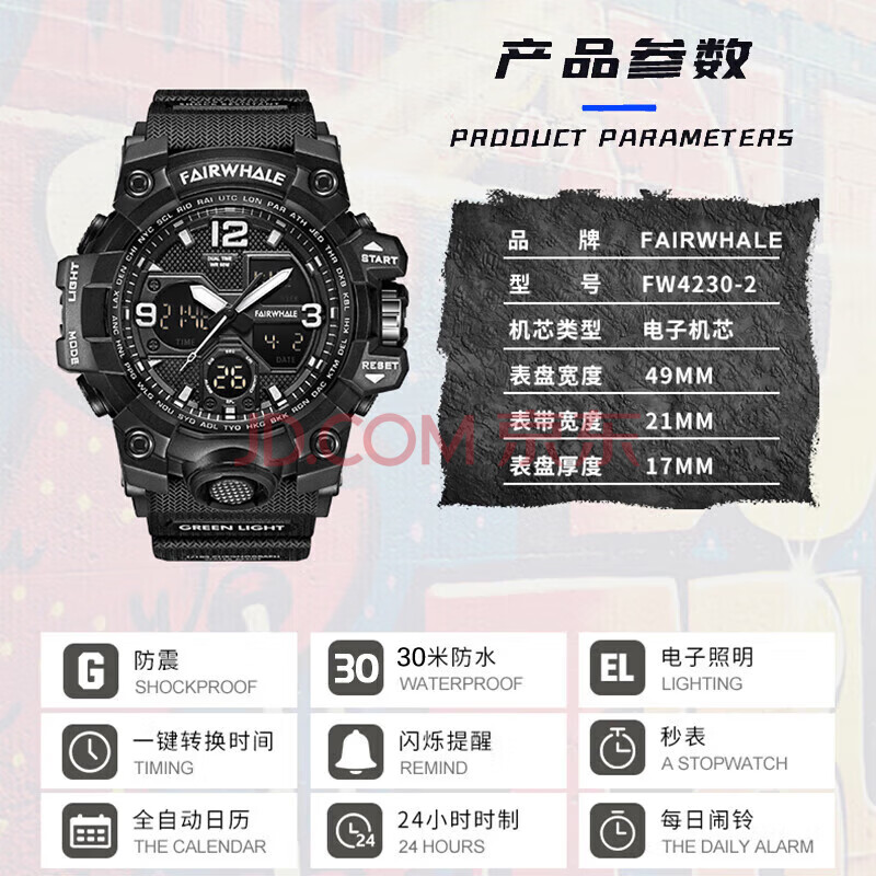 商品相册:马克华菲(MARK FAIRWHALE)手表男女儿童学生电子手表十大名表防水运动户外国表生日礼物4340第