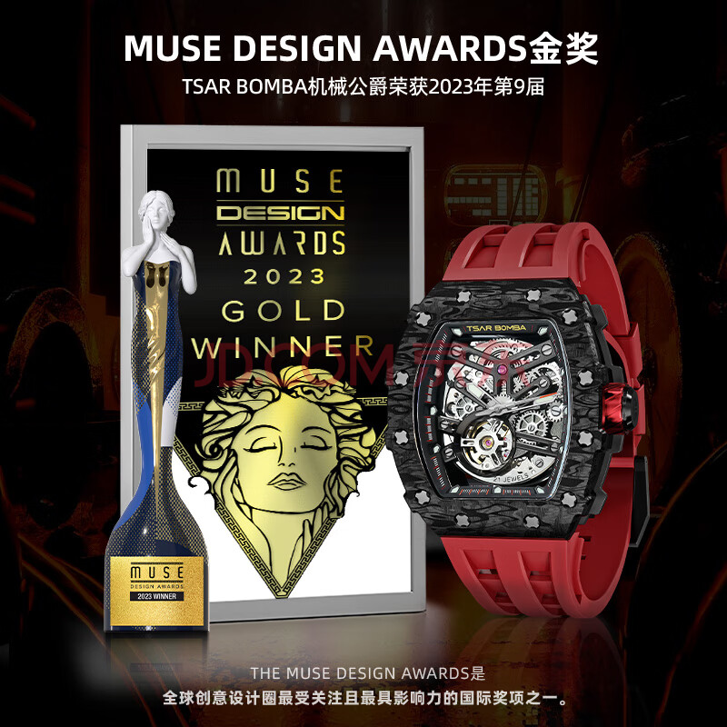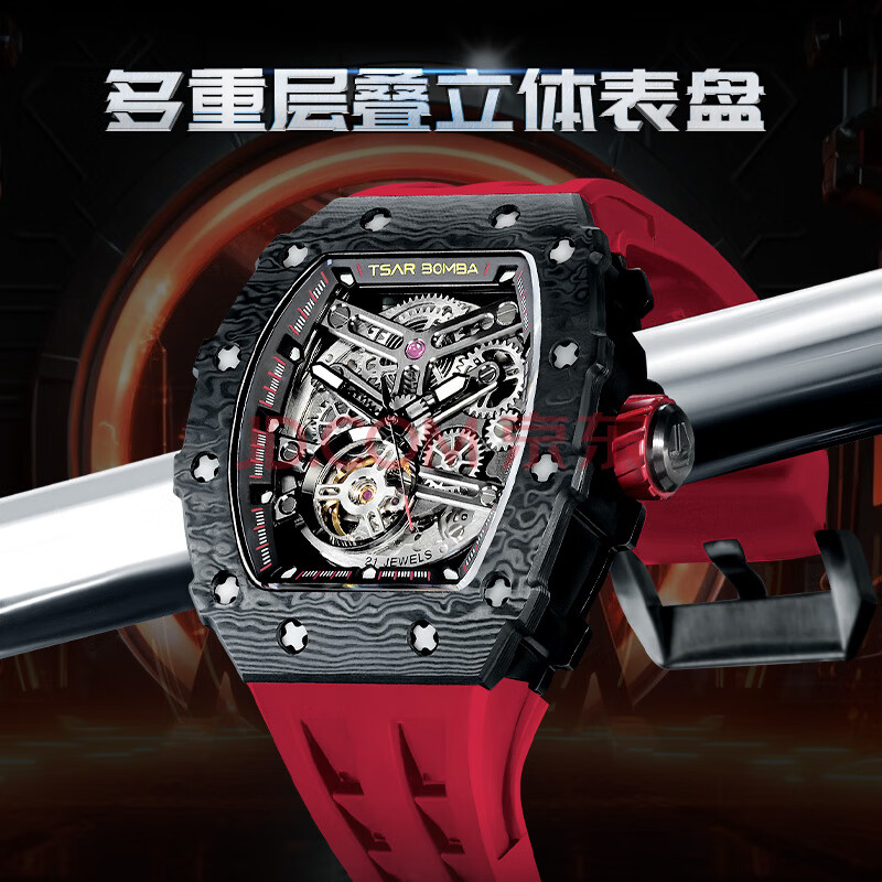 商品相册:机械公爵(TSAR BOMBA)极客碳纤维手表男士机械潮酷酒桶型品牌圣诞新年生节日送男友礼物第