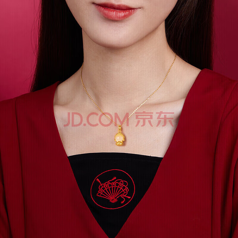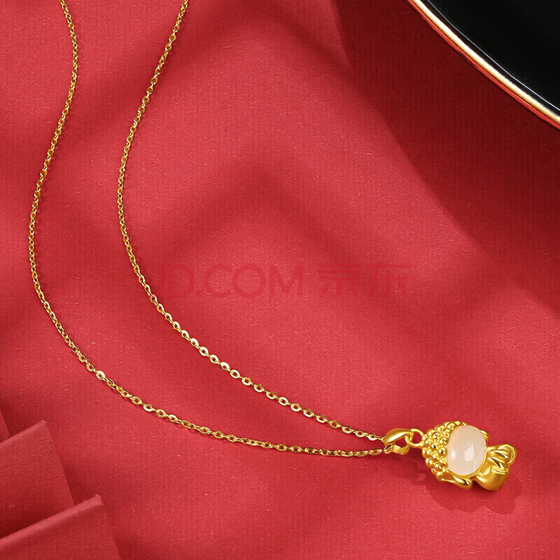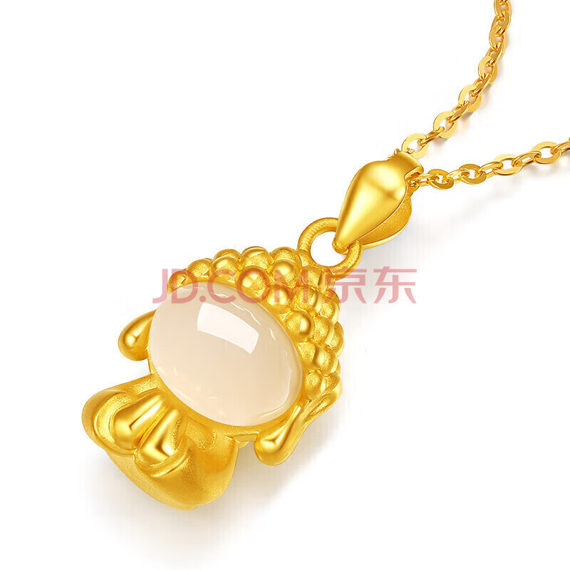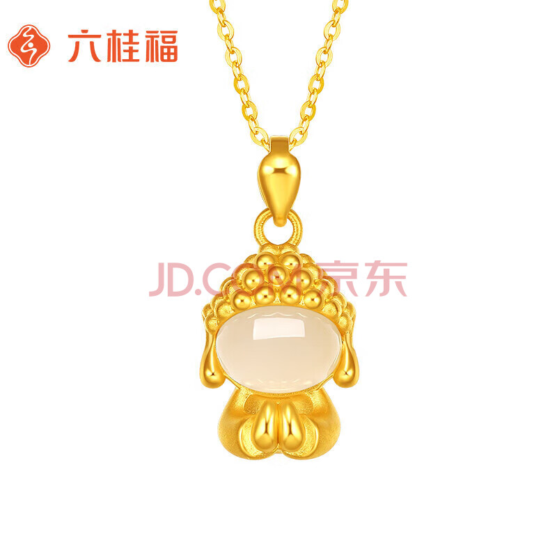 商品相册:六桂福珠宝 黄金吊坠 如来佛 足金镶玉挂坠项链 HT0600007配银链 0.6g第