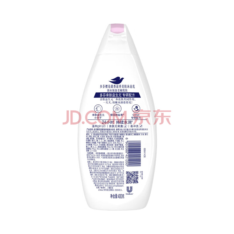 商品相册:多芬樱花甜香滋养沐浴乳400g 锁水保湿肌肤 持久留香(新老包装随机)第