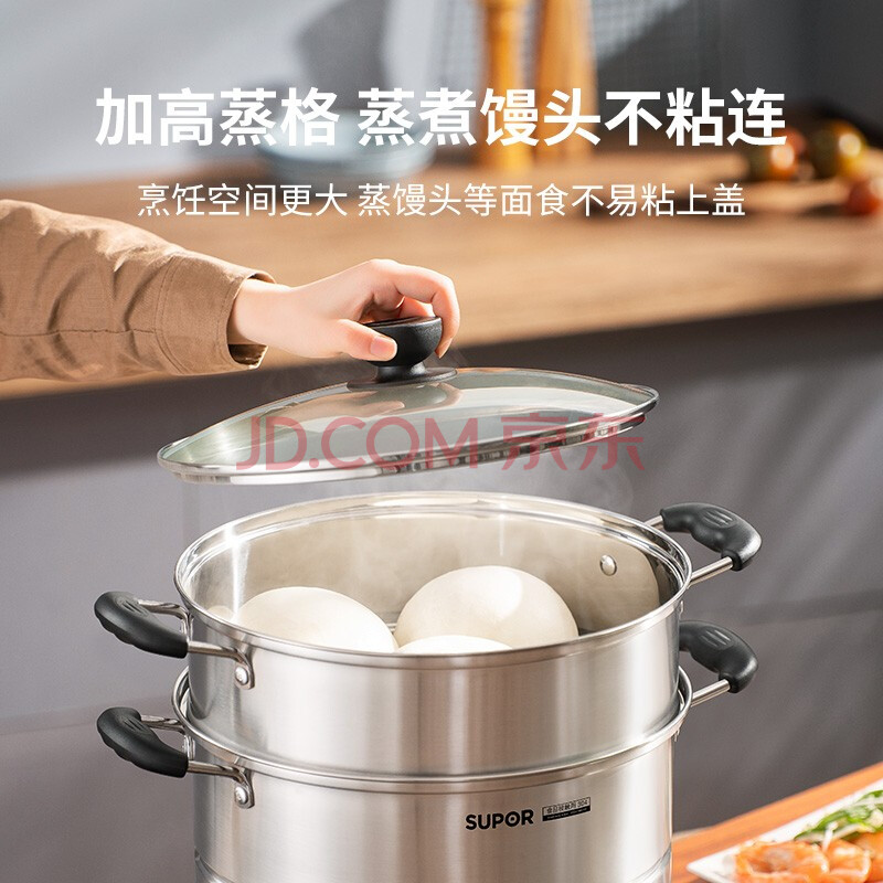 商品相册:苏泊尔SUPOR易存储304不锈钢双层复底30cm蒸锅汤锅蒸笼SZ30B1第