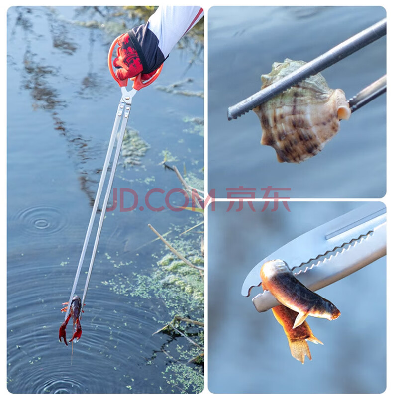 商品相册:乐往赶海工具抓螃蟹钳不锈钢钳控鱼器工具围炉煮茶木炭夹长53cm弯口第