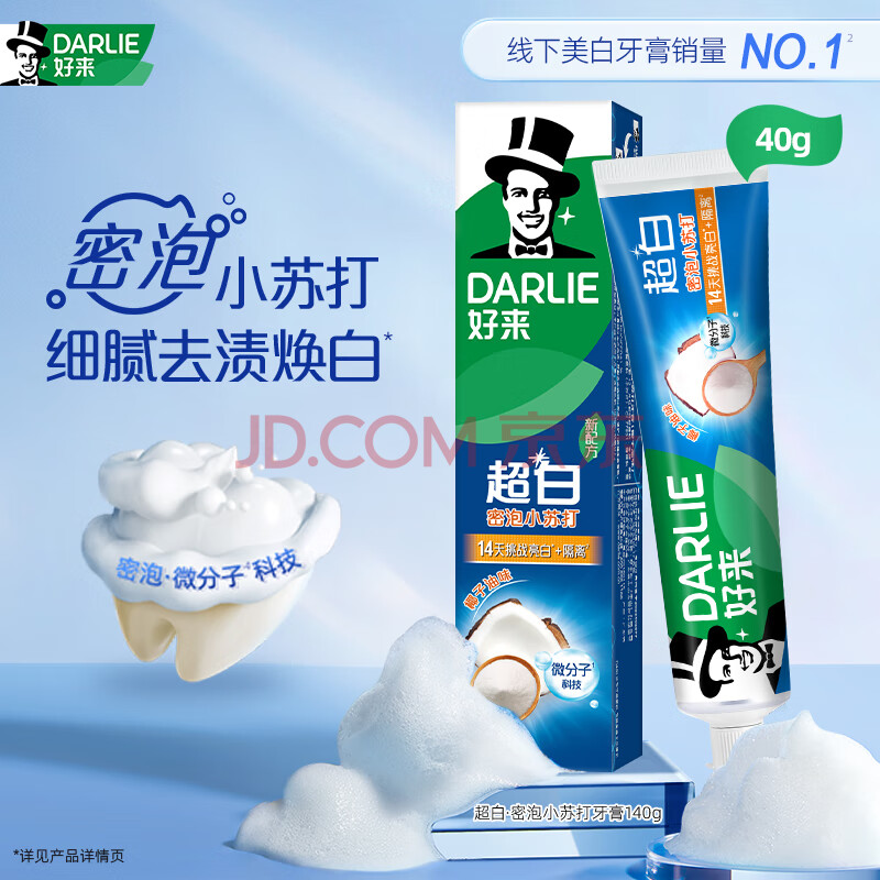 商品相册:好来(原黑人)小苏打超白牙膏40g清新口气 款式随机体验试用装第