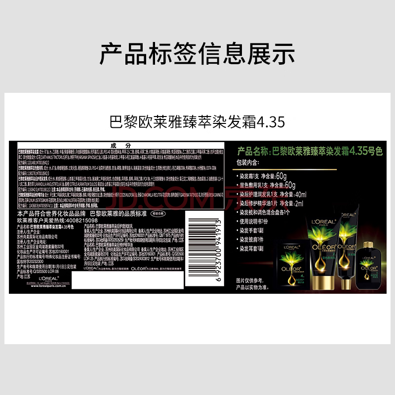 商品相册:欧莱雅臻萃精油染染发剂 男女遮盖白发 自己在家染发膏4.35雾桐茶棕第