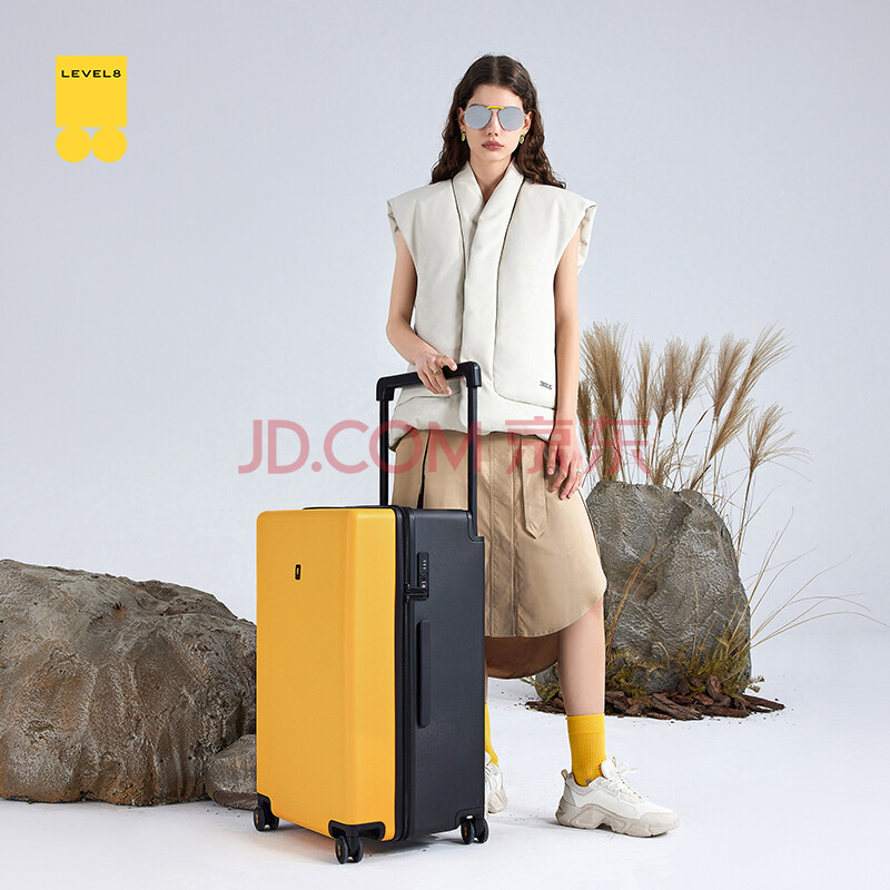 商品相册:地平线8号(LEVEL8)行李箱男女密码万向轮拉杆箱 大旅行家24英寸宽拉杆PC箱 黑黄拼色第
