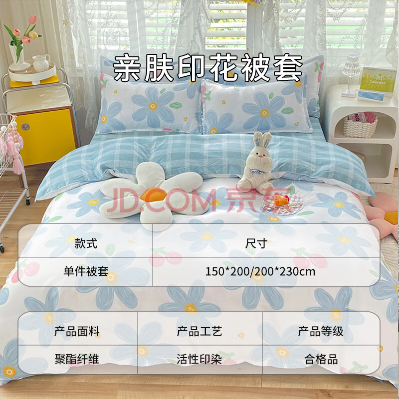 商品相册:艾薇 被套单件磨毛被罩双人学生宿舍1.5米床 200*230cm 蓝色花开第