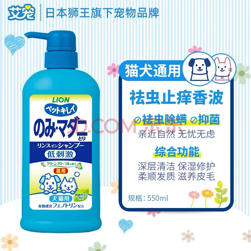 商品相册:狮王艾宠宠物狗狗猫咪沐浴露祛虫除螨除臭550ml猫狗通用二合一第