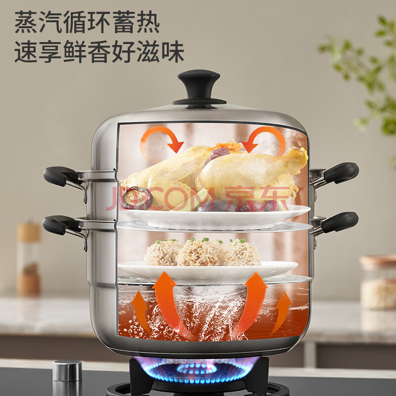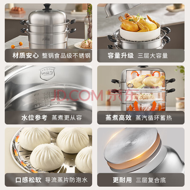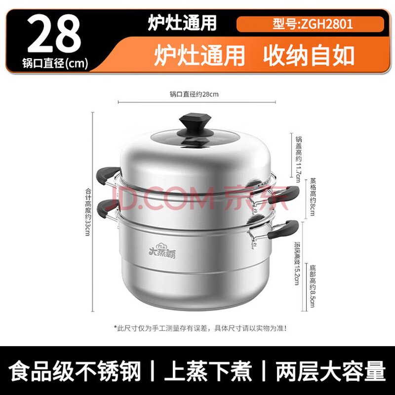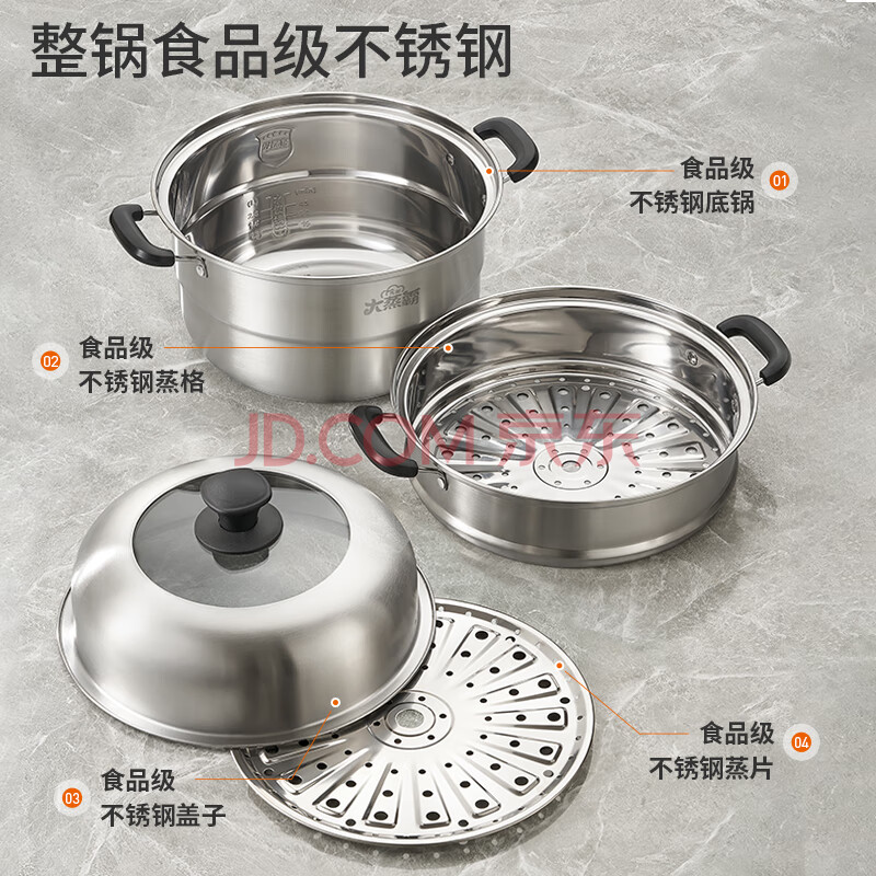 商品相册:九阳(Joyoung)蒸锅不锈钢双层蒸锅蒸鱼蒸馒头包子家用不锈钢蒸蒸笼大容量28CM第