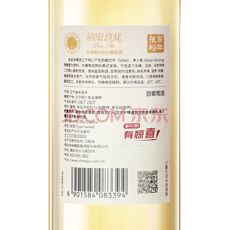 商品相册:张裕旗下初蜜真我冰菁晚采威代尔甜白葡萄酒750ml单瓶装自营红酒第