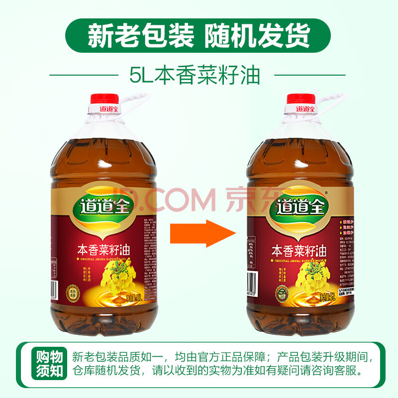 商品相册:道道全【保真菜籽油】食用油 本香菜籽油 物理压榨 5L*1桶第