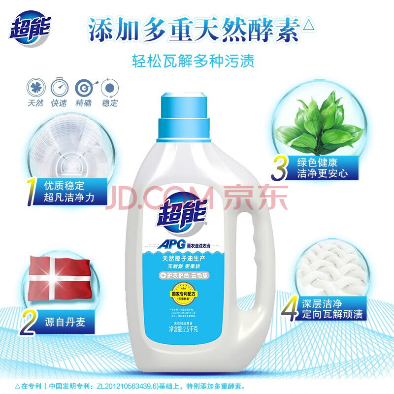商品相册:超能APG洗衣液 薰衣草香瓶 装护衣护色家庭装家庭装 2.5kg*4瓶第1张/共3