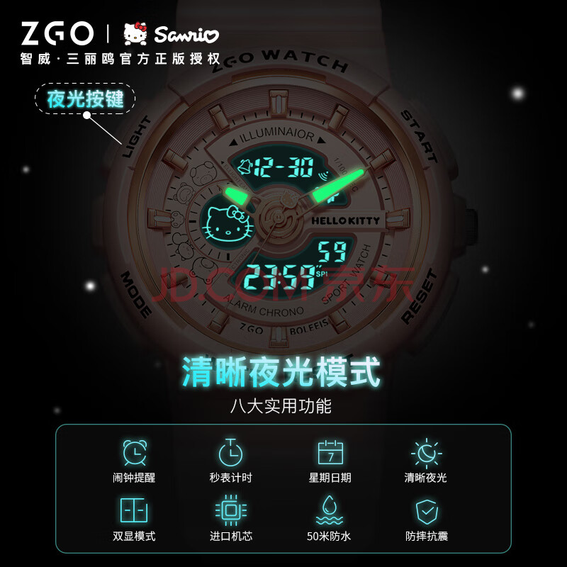 商品相册:正港(ZGO)三丽鸥电子手表初高中生高颜值女生儿童手表小学生防水生日礼物第
