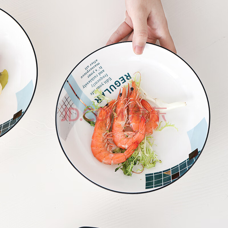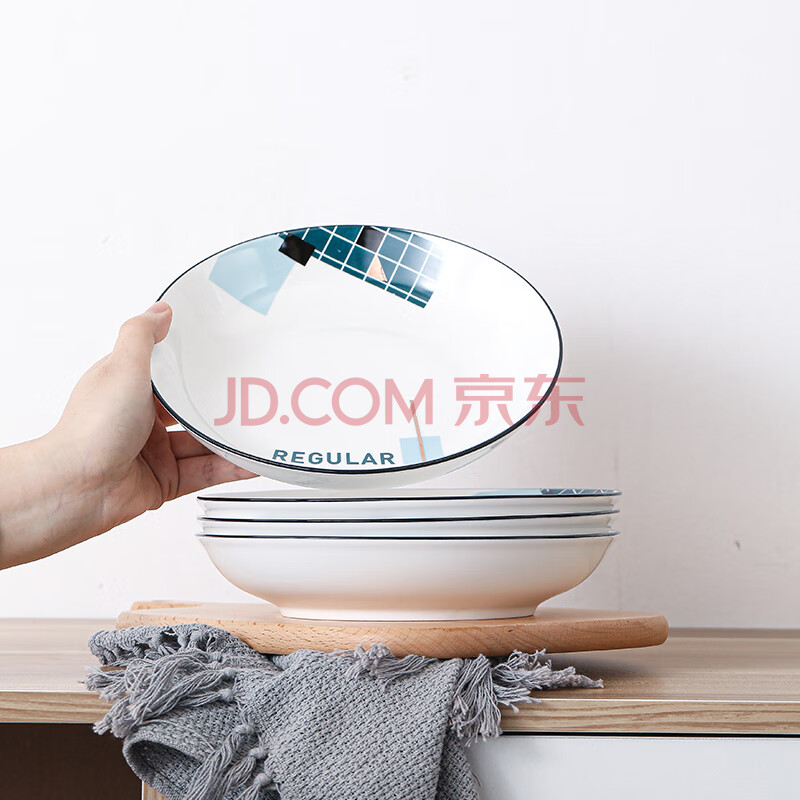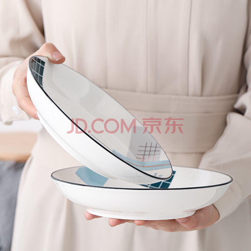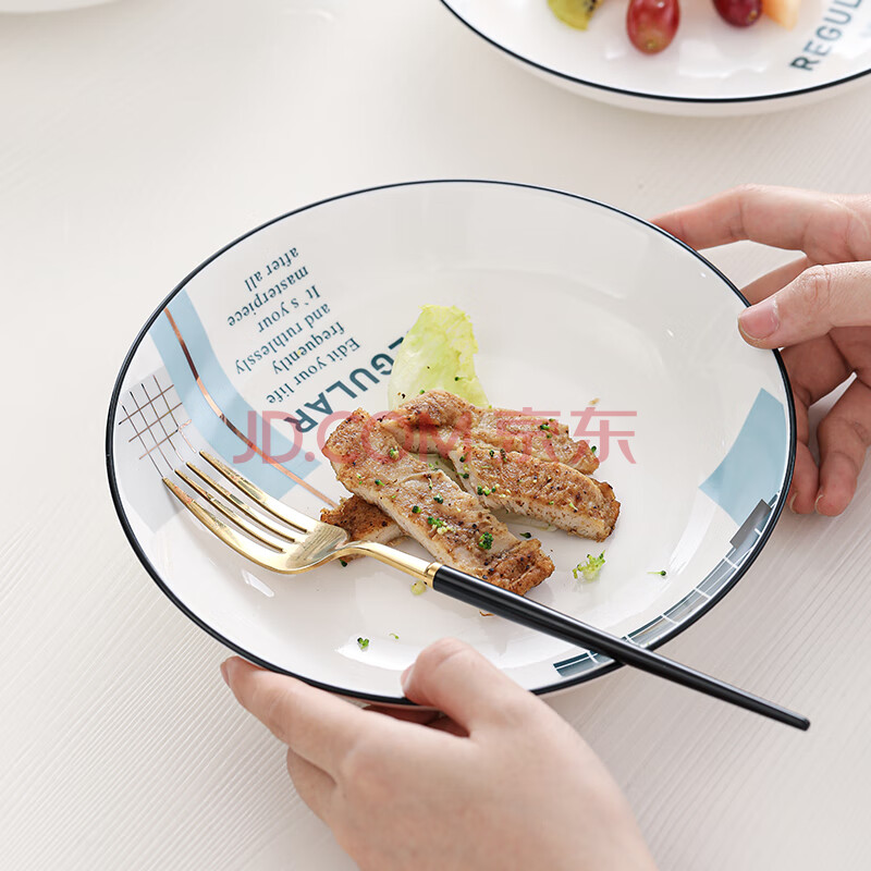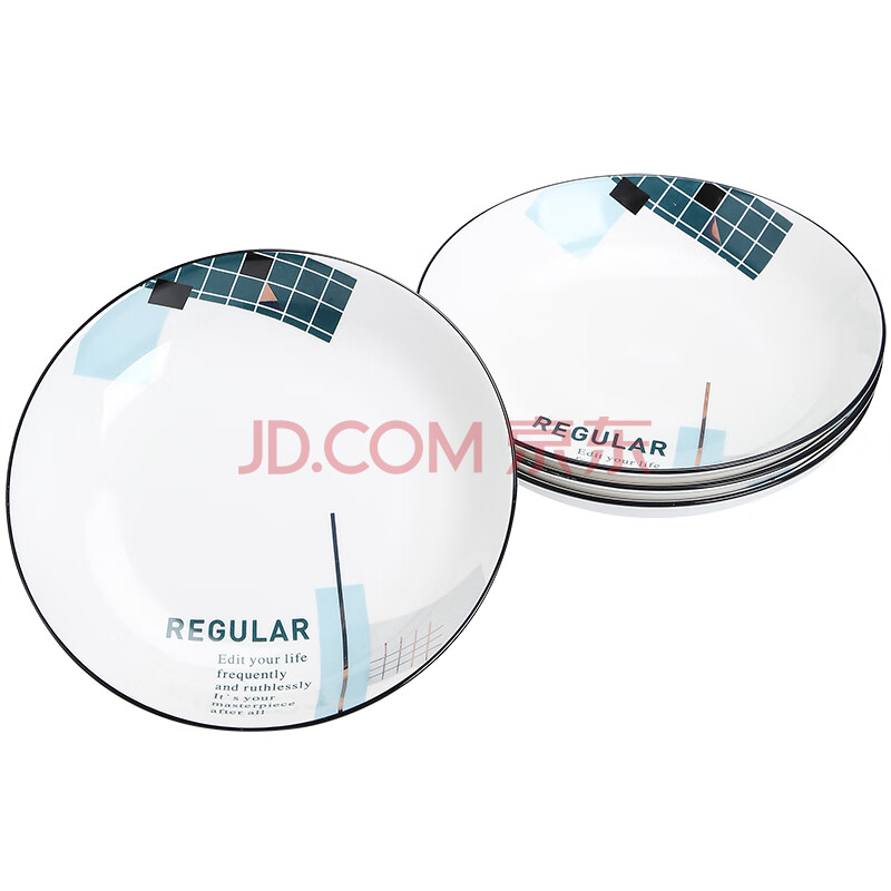 商品相册:苏氏陶瓷汤菜盘子城市方格8英寸小清新简约家用陶瓷碟4只装中餐具第