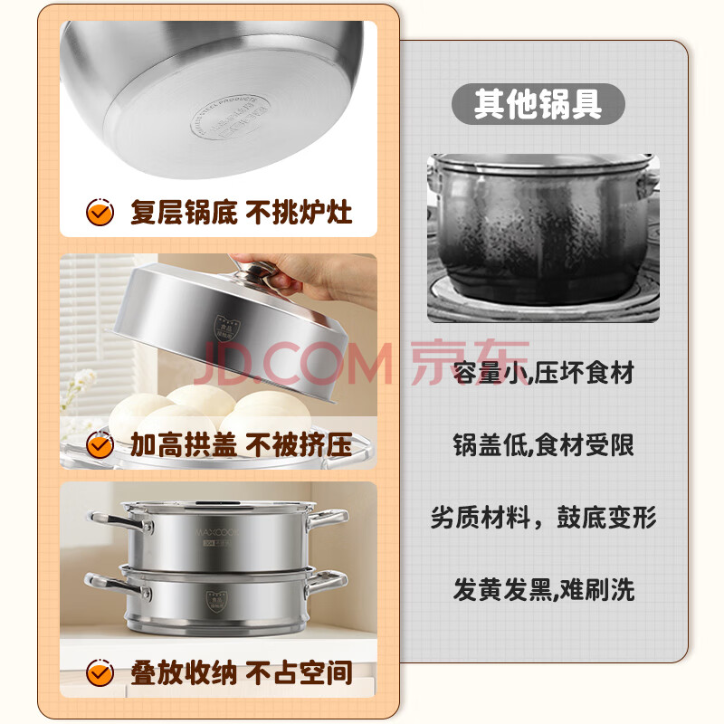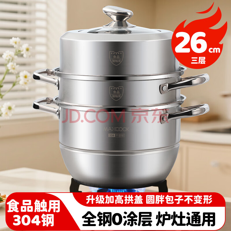 商品相册:美厨(maxcook)蒸锅 304不锈钢26CM三层 加厚复底汤锅 燃气电磁炉通用 MCZ8703第