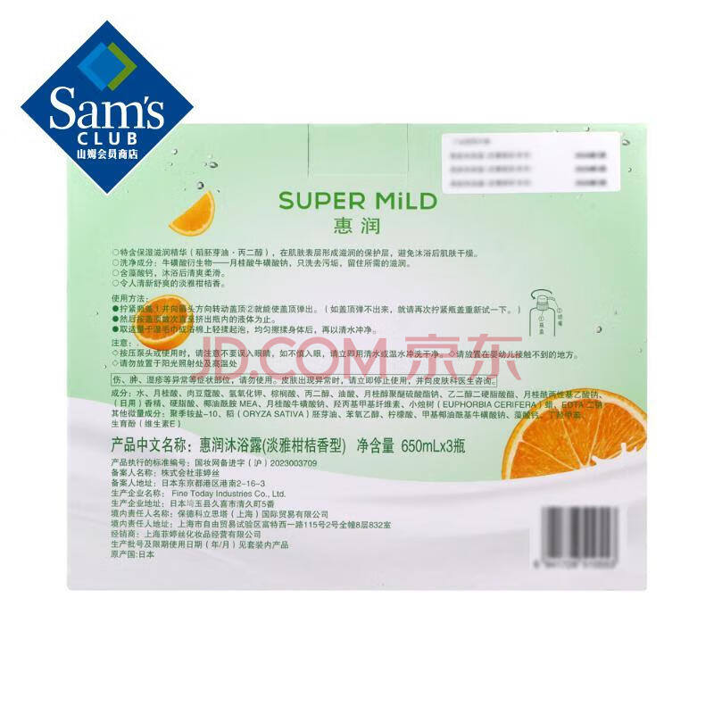 商品相册:惠润(SUPER MiLD) 进口 沐浴露(淡雅柑桔香型) 650ml*3 650ml 3瓶第