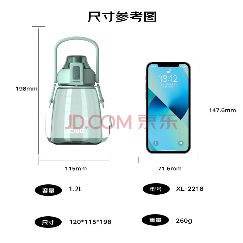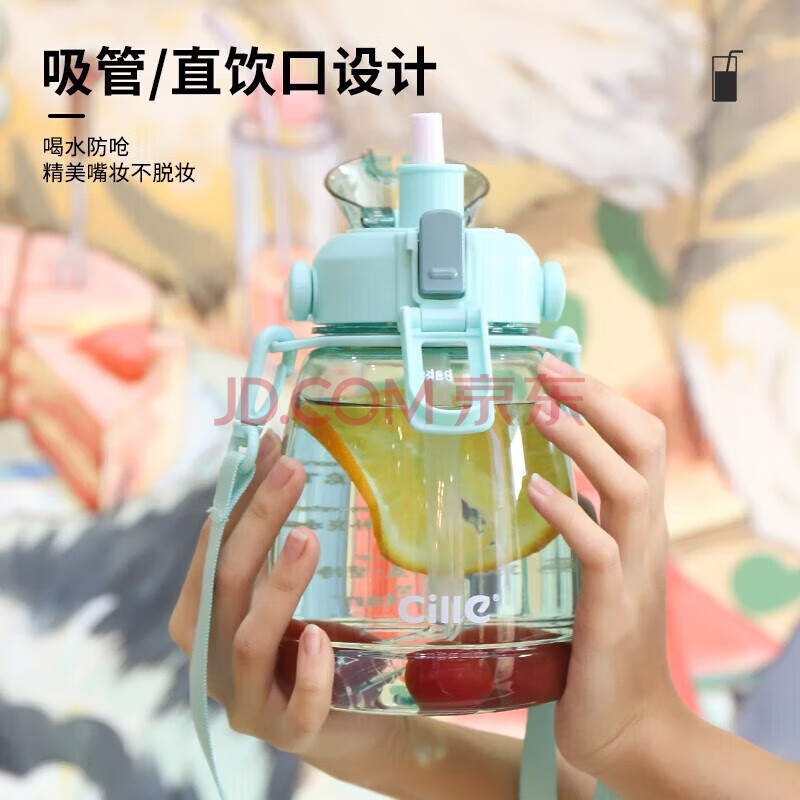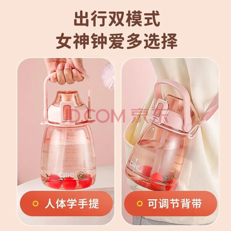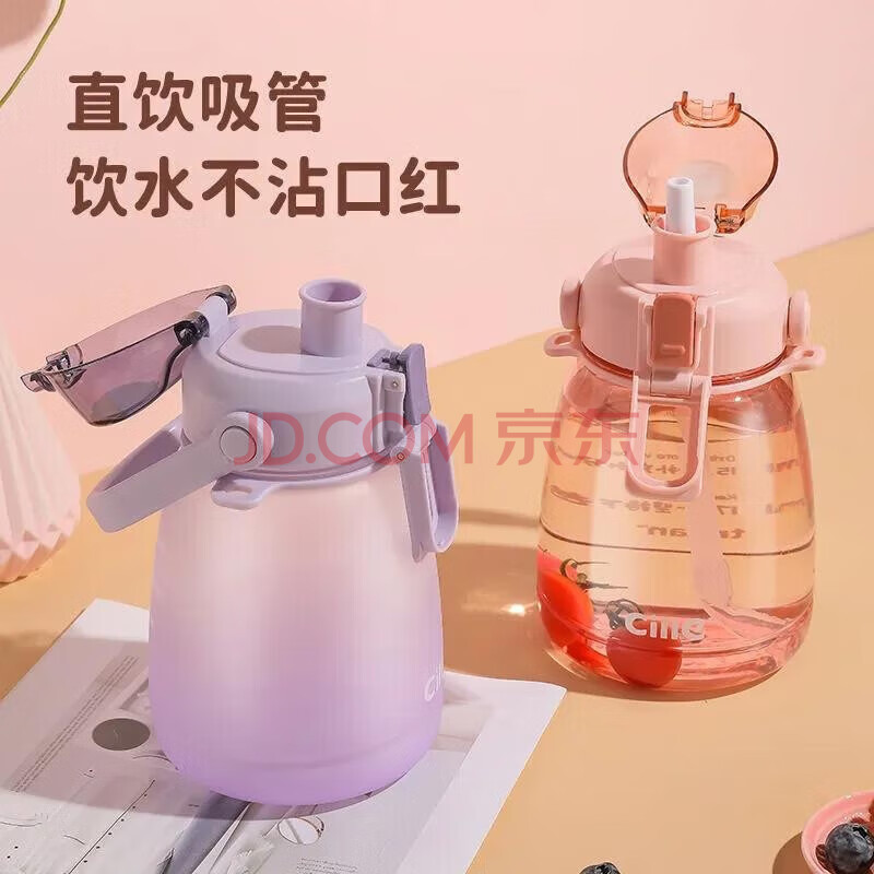 商品相册:希乐大肚水杯大容量户外运动女儿童学生tritan刻度吸管塑料杯子 灰色第