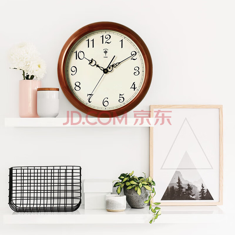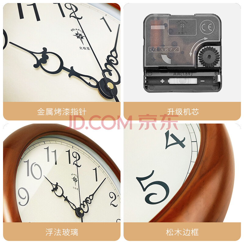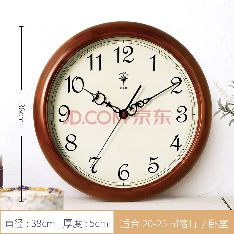 商品相册:北极星(POLARIS)挂钟 欧式实木客厅时尚创意时钟简约现代挂表挂墙石英钟表38cm第