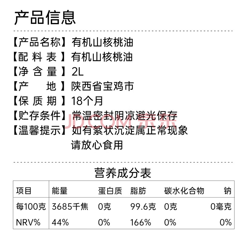 商品相册:关中油坊 有机山核桃油2L 物理压榨 凉拌热炒家庭食用油京东自营第