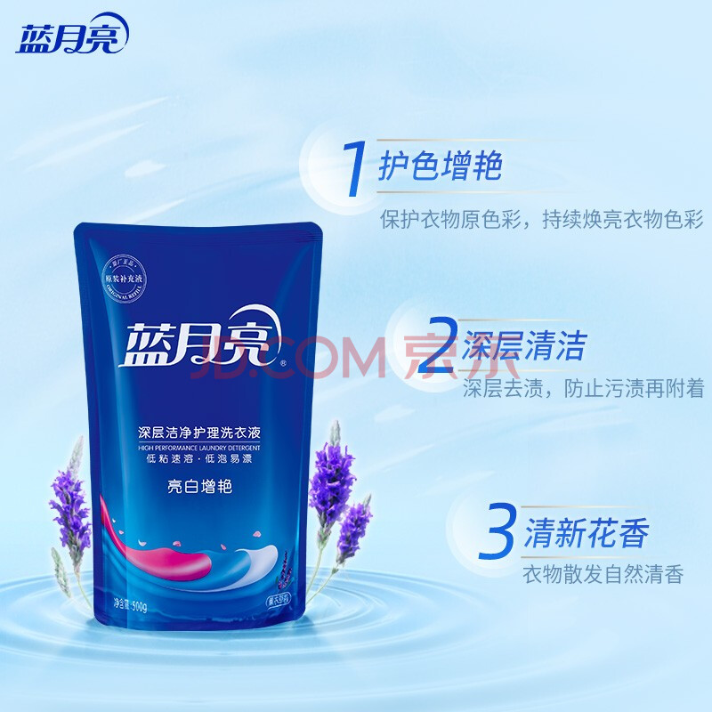 商品相册:蓝月亮 深层洁净护理洗衣液自然清香袋装500g*2袋 家庭清洁超值2袋装第