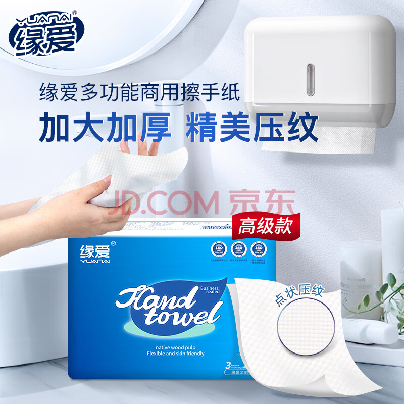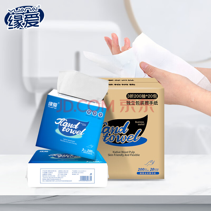 商品相册:缘爱擦手纸1层200抽*20包商用抽纸厨房纸巾干手纸抹手纸独立包装整箱第
