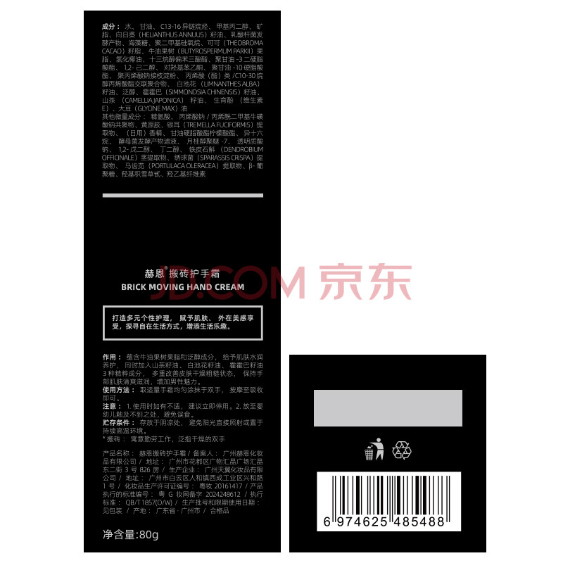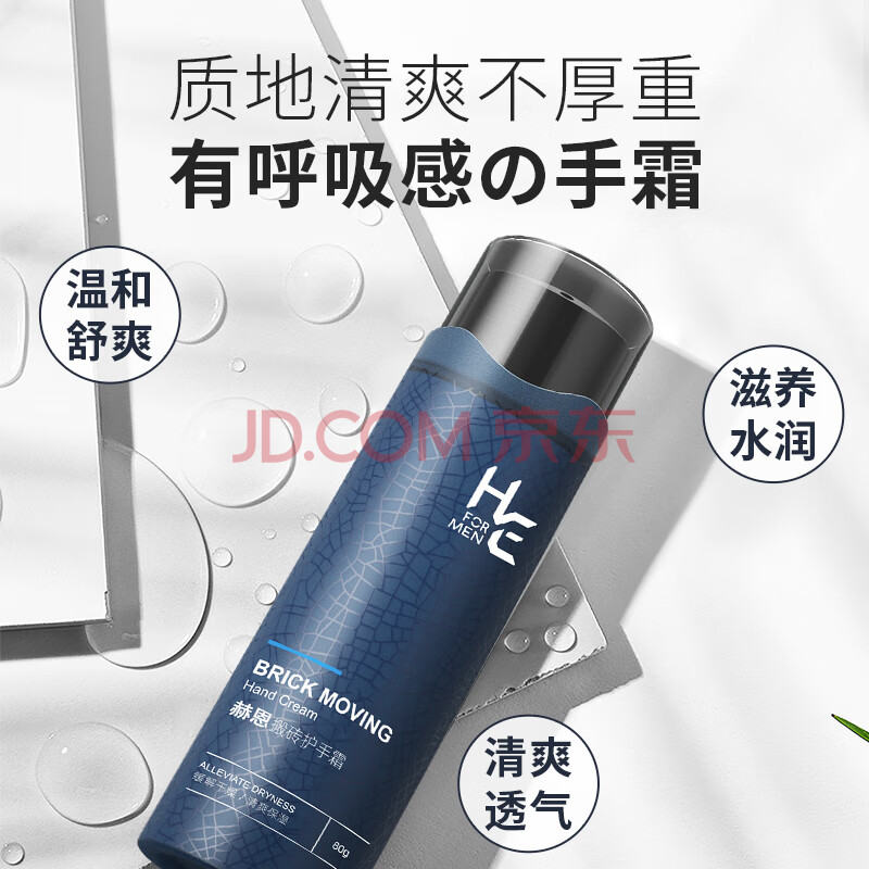 商品相册:赫恩(H&E)男士防干裂保湿护手霜80g*2支男女通用 清爽滋润 补水搬砖润手霜第