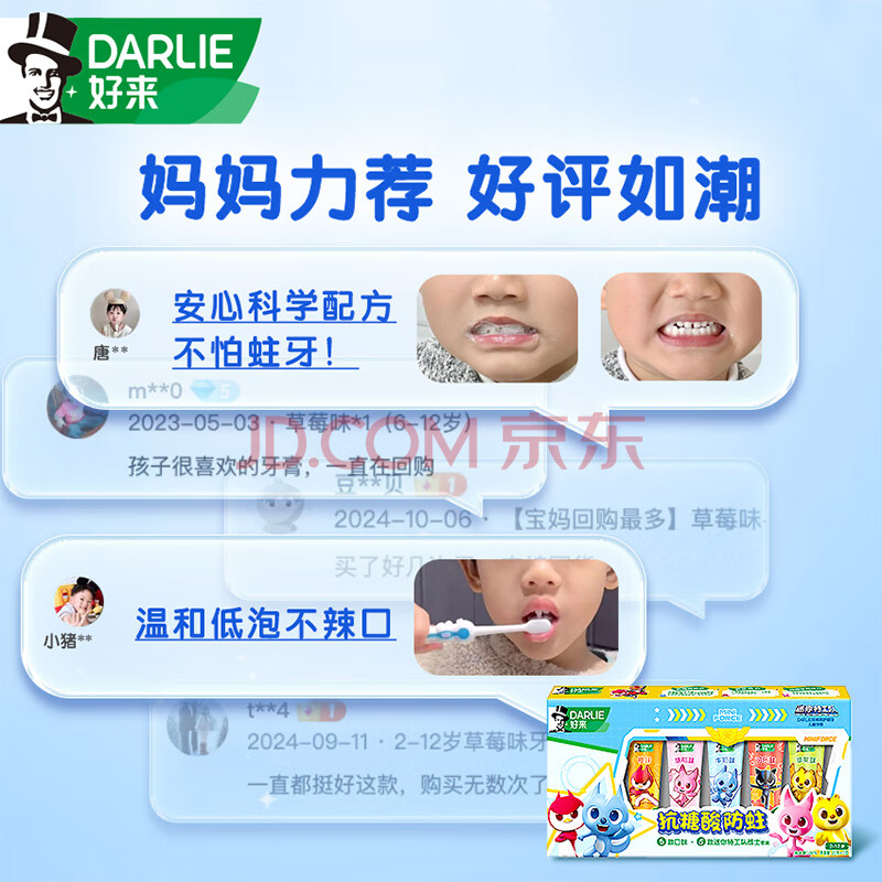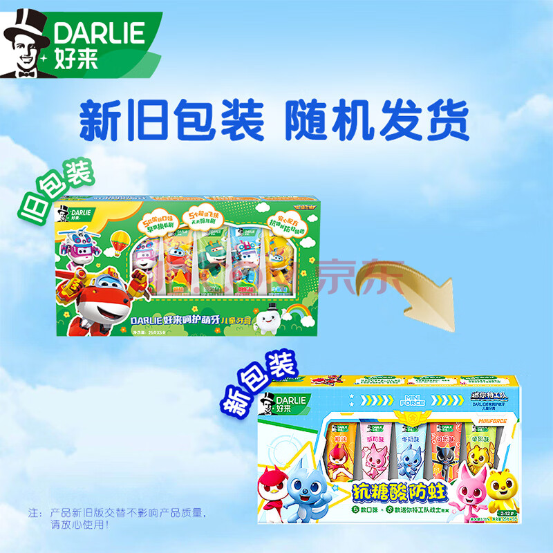 商品相册:DARLIE好来(原黑人)儿童牙膏套装2-12岁(25g*5支) 防蛀(新旧包装随机)第