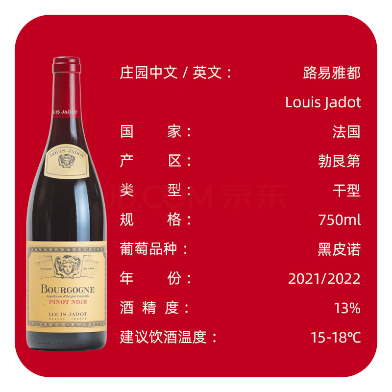 商品相册:路易亚都世家(Louis Jadot)法国勃艮第黑皮诺干红葡萄酒750ml 整箱 聚会品鉴 热门商品第