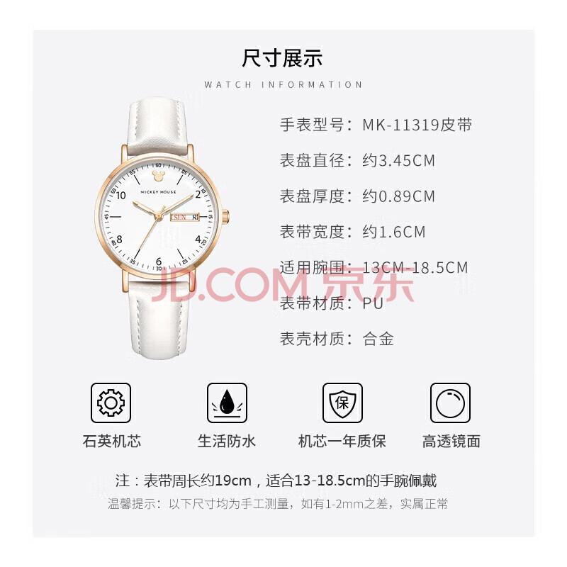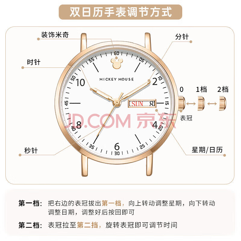 商品相册:迪士尼(Disney)女士手表时尚双日历少女腕表生日开学情人节礼物送女生爱心礼盒装第