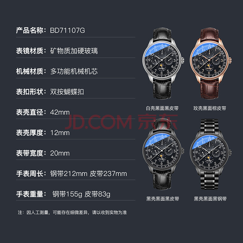 商品相册:邦顿(Bestdon)男士手表机械表全自动大表盘腕表礼盒男款礼物送男生第