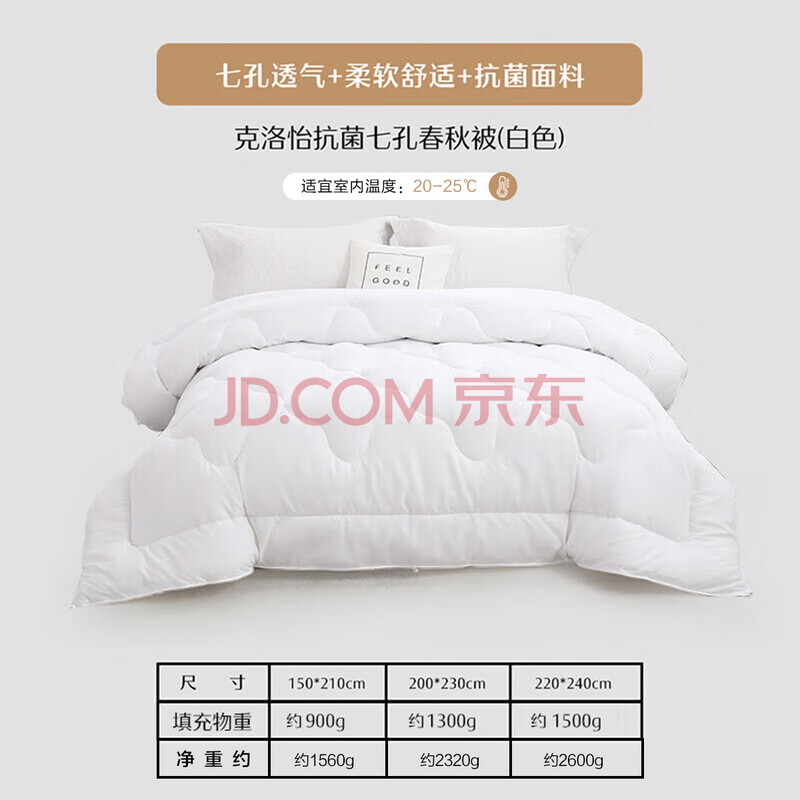 商品相册:水星家纺被子春秋被秋冬被子被芯抗菌纤维被褥约3.1斤150*210cm白第