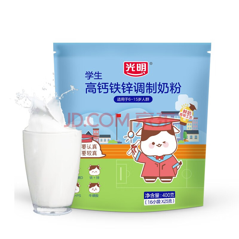 商品相册:光明 高钙 铁锌 调制 奶粉 学生奶粉 青少年营养奶粉400g 牛奶粉第