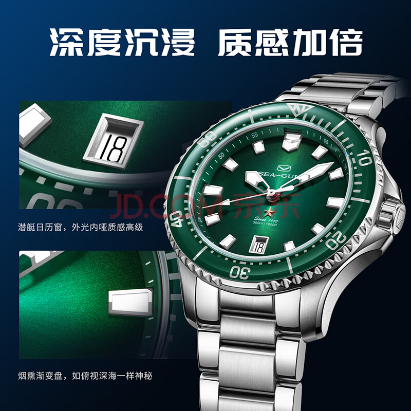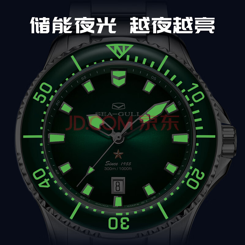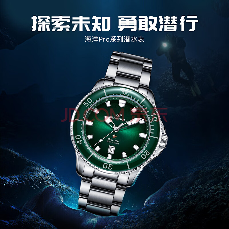商品相册:海鸥(SEAGULL)手表男士自动机械表 海洋pro男士手表生日礼物潜水表1213(绿40mm)第