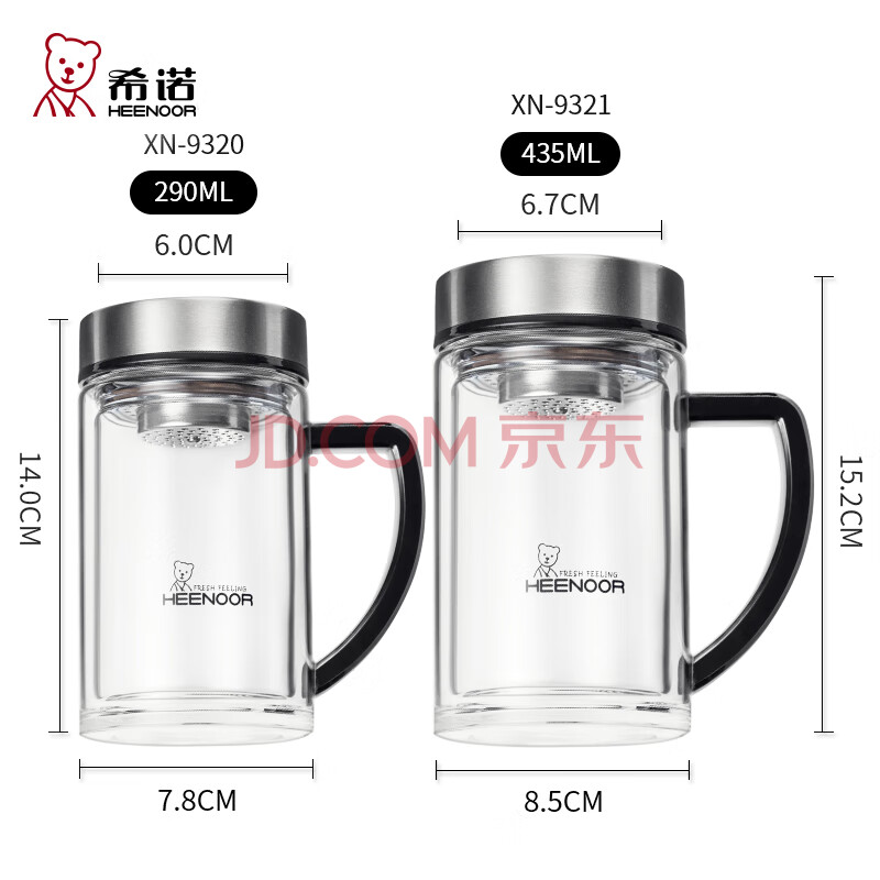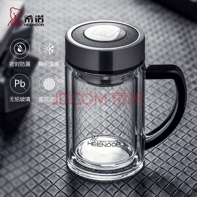 商品相册:希诺(HEENOOR)玻璃杯双层男女士商务办公室把杯XN-9321(礼盒)435ml第